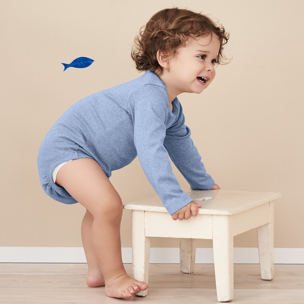 Pre jemnú detskú pokožku vášho bábätka prinášame organické materiály bez kompromisov. Tieto body z čistej organickej bavlny poskytujú vašim drobcom pohodlnosť. Sú v elastickej jemne rebrovanej kvalite a krásne sa prispôsobia telu. Prekrývajúci výstrih na krku uľahčuje obliekanie a vyzliekanie, zatiaľ čo praktické patentky v oblasti rozkroku robia prebaľovanie jednoduchým. Malé riasenie na nožičkách poskytuje dostatok miesta pre plienku.